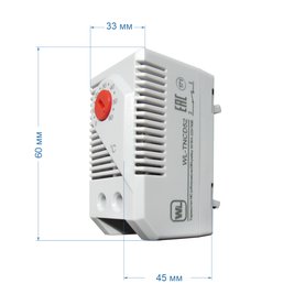 ST-THS-NC01 термостат нормально-замкнутый механический предназначен для поддержания фиксированной температуры и предотвращения образования конденсата, коррозии в корпусных изделиях, клеммных коробках, Номинальное напряжение, В: 110, Номинальный ток контактов: 220В: 10А, Чувствительный элемент: биметаллический элемент, Диапазон регулировки температуры: от 0 °С до +60 °С, Срабатывание при отклонении от установленной °t: 5°С (± 4 °С погрешность), Тип контакта: NC, Тип крепления: на DIN-рейку 35мм, Степень защиты: IP20, Рабочая температура: -20°С - +80°С, Материал корпуса: пластик, Цвет корпуса: светло-серый, Габариты изделия, мм: 60х33х43, Комплектация: термостат, паспорт, упаковочная тара