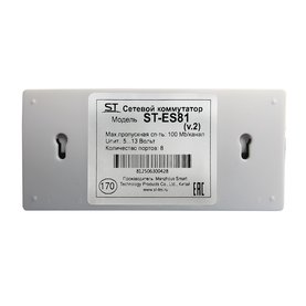 ST-ES81 (версия 2) сетевой 8-ми портовый коммутатор, Ethernet порты: 8 х (10/100Мбит/с), 100 Мбит/канал, Uпит(В): 5...13 (±10%)В, IEEE802.3u, IEEE802.3x, IEEE802.3ab, 10BASE-TX:14880 пакетов в сек./порт, 100BASE-TX:148800 пакетов в сек./порт, 1,6 Гбит/с, Пластик, От 0°C до +40°C, 122х54х22