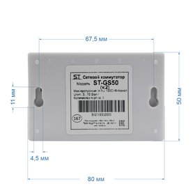 ST-GS50, (версия 2)ST-GS50 (версия 2) Cетевой 5-ти портовый коммутатор, Ethernet порты: 5 х (10/100/1000 Мбит/с), 1000 Мбит/канал, IEEE802.3u IEEE802.3x IEEE802.3ab, 10BASE-TX:14880 пакетов в сек./порт 100BASE-TX:148800 пакетов в сек./порт 1000BASE-TX:1488000 пакетов в сек./порт, 10 Гбит/с, пластик, От 0°C до +40°C, 80х50х22