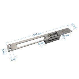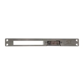 Защелка электромеханическая ST-NO 001, Нормально-открытая (закрывается подачей питания), переставляемый язычок, переставляемая запорная планка, DС12В, 220 мА, 400 кг, сталь с покрытием, серебристая, –40..+50°C, 67*17*28,6 мм, 156 гр