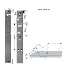 Замок электромагнитный ST-ML180-1, Рабочее напряжение: 12-14В, Ток потребления: 300мА, Сила удержания: 180кг, –40..+50°C