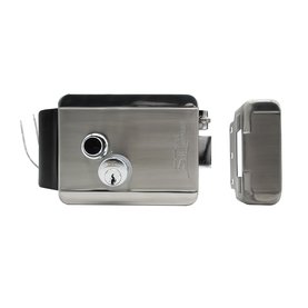 Замок электромеханический ST-EL-06 (N/2C/B/SS), DC12В±15%, 1,7А, цилиндр двойной, нержавеющая сталь, IP55, Серебро, –40..+70°С, 125х98х36 мм