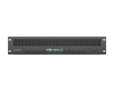 CVGAUDIO ZONER Power Gain - 8120T – работает в D-class, что обеспечивает высокую эффективность и низкое энергопотребление и тепловыделение. На лицевой панели усилителя расположены регуляторы громкости и светодиодные индикаторы режимов и статусов работы усилителя отдельно для каждого из восьми каналов. На задней панели находятся коннекторы для подключения акустических систем и входа от источника сигнал, предусилителя или аудио-процессора. Используется балансное подключение, отдельно для каждого из восьми каналов оно выполнено на 3-pin разъемах EURO-BLOCK. Каждый вход имеет также линкующий параллельный выход для подключения дополнительного зонального усилителя мощности. Восемь спикерных выходов реализованы на коннекторах 2-pin EuroBlock с увеличенным расстоянием между контактами для уменьшения вероятности замыканий. Также на задней панели расположены аварийные контакты EXT.MUTE при замыкании которых трансляция на всех каналах усилителя мьютируется. Наличие таких контактов – обязательная опция для сопряжения усилителя с системой аварийно-пожарного оповещения. CVGAUDIO ZONER Power Gain – 8120T выполнен в металлическом корпусе с алюминиевой лицевой панелью стандартной высоты 2U. Предусмотрены крепежные отверстия для установки усилителя в монтажную стойку. Используется интеллектуальное активное охлаждение - скорость вращения вентиляторов зависит от температуры нагрева внутреннего радиатора, на котором установлены активные греющиеся элементы усиления. CVGAUDIO ZONER Power Gain - 8120T имеет все актуальные системы защиты – от перегрева, перегрузки, короткого замыкания, предохранитель по питанию.