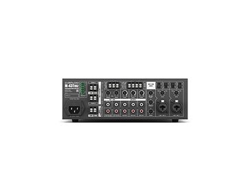 CVGAUDIO M-43Tmz – профессиональные инсталляционные многофункциональные микшеры-усилители с возможностью индивидуального управления громкостью двух спикерных зон. Предназначены для работы в составе 100V трансляционных сетей. Мощность усилителя – 40W. Низкоомного подключения в данных моделях не предусмотрено. Микшеры – усилители CVGAUDIO серии М имеют отличное качество звучания и очень богатый функционал, который позволяет решать многие задачи, стоящие перед интеграторами систем коммерческого звука на базе одного, самодостаточного устройства.