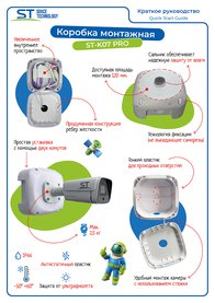 Монтажная коробка ST-K07 PRO (БЕЛАЯ/ЧЕРНАЯ) для видеокамер охранного наблюдения, предназначена для установки и подключения видеокамер охранного видеонаблюдения, Габаритные размеры: 150х150х72 мм, Максимальная нагрузка: 2,5 кг, Пластик, Цвет: Белая/Черная, Рабочая температура: -50…+60°С, Степень защищенности: IP 66, Вес нетто: 0,23 кг, Комплектность: Сальник для ввода гофротрубы - 1 шт., Саморез (крепл. кам.) 3,9х16 мм - 4 шт., Саморез (креп.крыш.) 4х40 мм - 4 шт., Саморез (креп.к стене) 4х60 мм - 4 шт., Дюбель распорный 6*35 мм - 4 шт., Паспорт